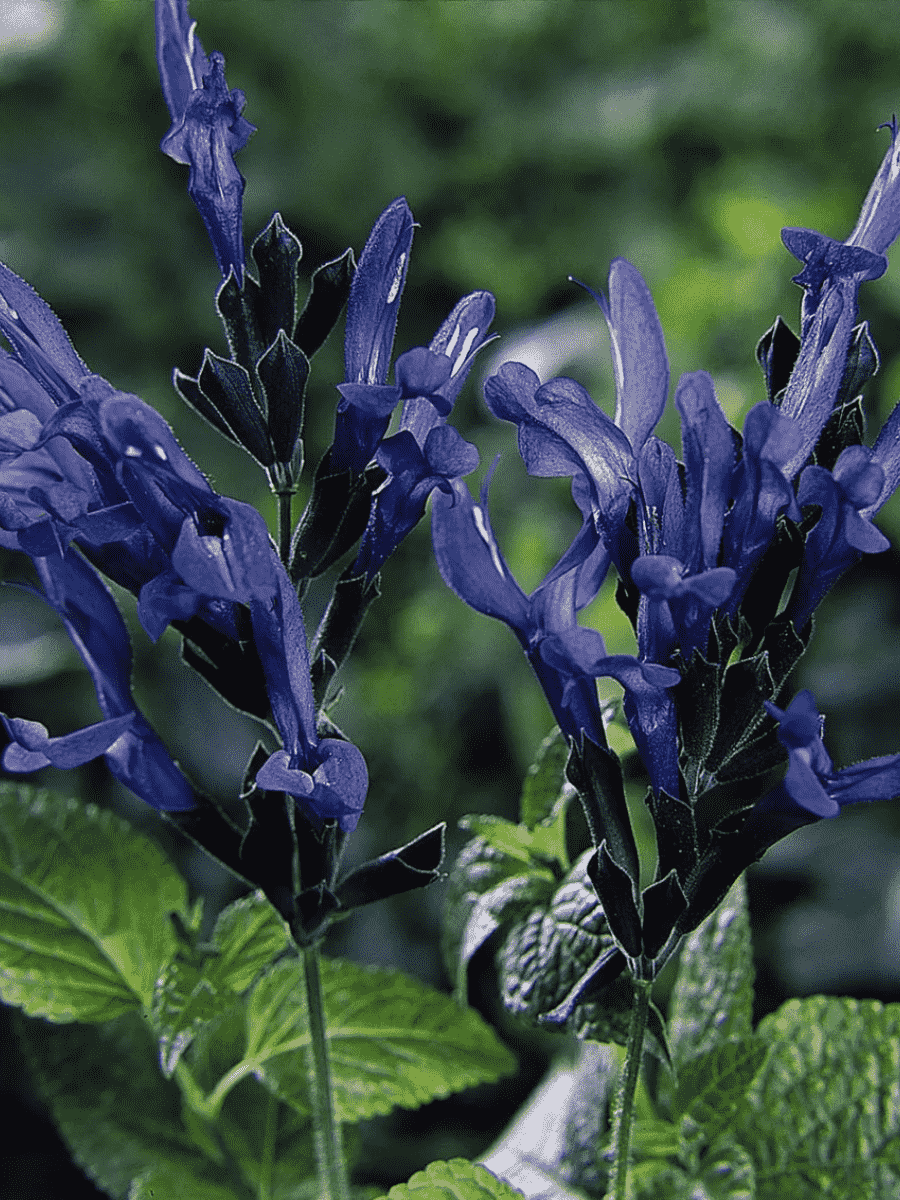 Шалфей Black and Blue очаровывает своей элегантностью и утончённостью, представляя собой многолетнее травянистое растение с прямостоячими стеблями высотой до полуметра. Листья крупные, овально-ланцетной формы, слегка морщинистые, покрыты нежным пушком, придающим им бархатистость и серебристо-зелёную окраску. Цветки собраны в плотные колосовидные соцветия, поражающие контрастом тёмно-фиолетовых венчиков и ярко-синих трубочек, словно драгоценная палитра художника, вдохновлённого природой. Период цветения продолжительный, начинается в июне и длится до конца лета, привлекая пчёл и бабочек своим ароматом и красотой. Растёт шалфей неприхотливо, предпочитает солнечные места и хорошо дренированные почвы, легко адаптируясь к различным условиям произрастания и украшая сады изысканным акцентом среди зелёного массива растений.