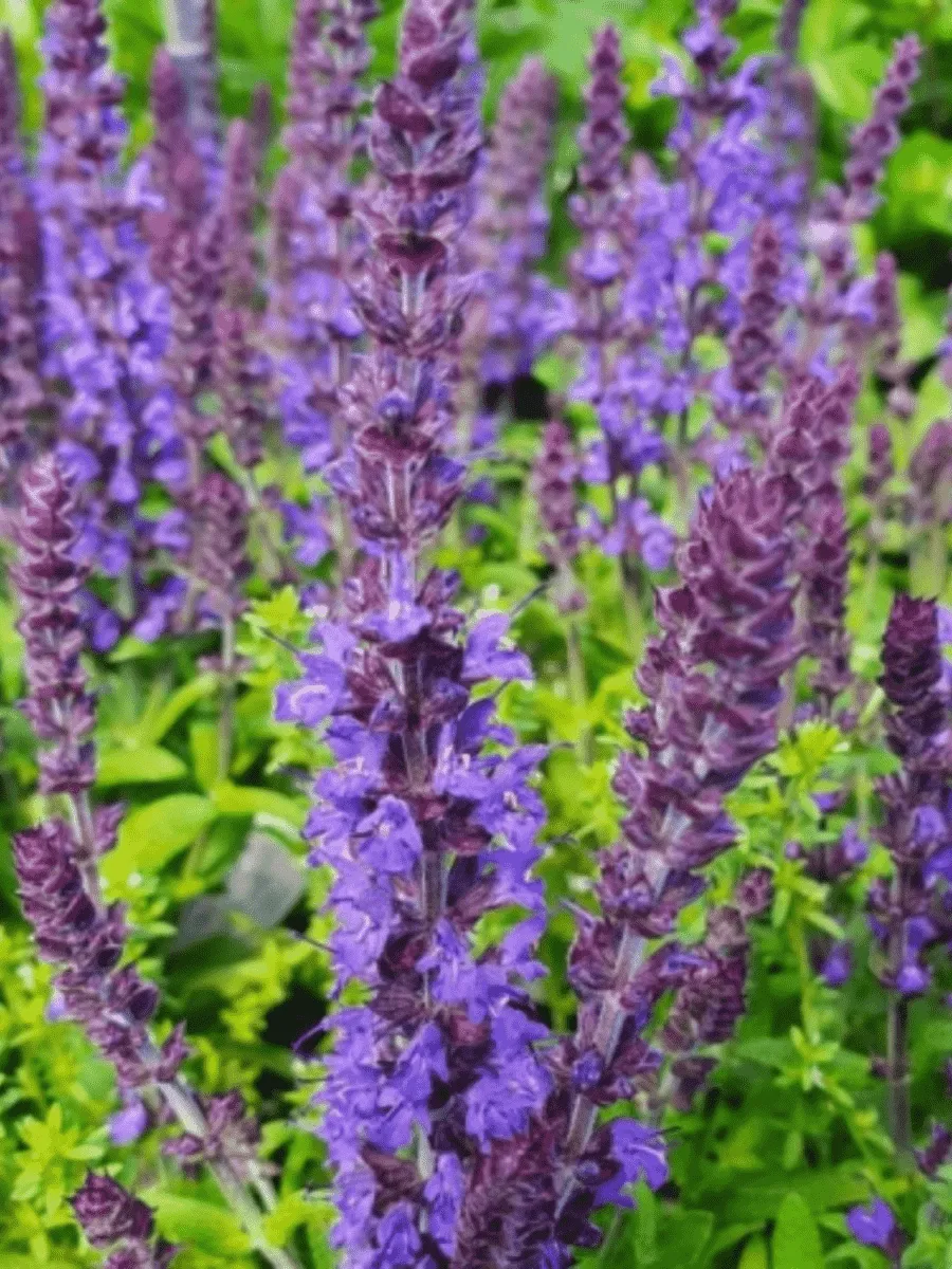Шалфей дубравный сорта *Synchro Blue* пленяет взор своей утончённой красотой и благородством форм. Это многолетнее травянистое растение достигает высоты около полуметра, формируя компактную кустистую крону с прямостоячими стеблями, покрытыми нежной пушистой опушкой. Листья шалфея крупные, сердцевидные, слегка морщинистые, насыщенно-зелёного цвета с серебристым отливом, словно украшенные тонкой россыпью перламутровых бликов. Цветёт обильно и продолжительно, начиная с июня и до конца лета, покрываясь многочисленными колосовидными соцветиями, состоящими из множества мелких цветков глубокого синего оттенка, будто отражающих ясность летнего неба. Растение предпочитает солнечные места, хорошо дренированные почвы и умеренный полив, легко адаптируясь к различным условиям произрастания благодаря своей природной выносливости и неприхотливости. Благодаря изысканной декоративности шалфей широко используется в ландшафтном дизайне, создавая живописные акценты в садах и парковых композициях.