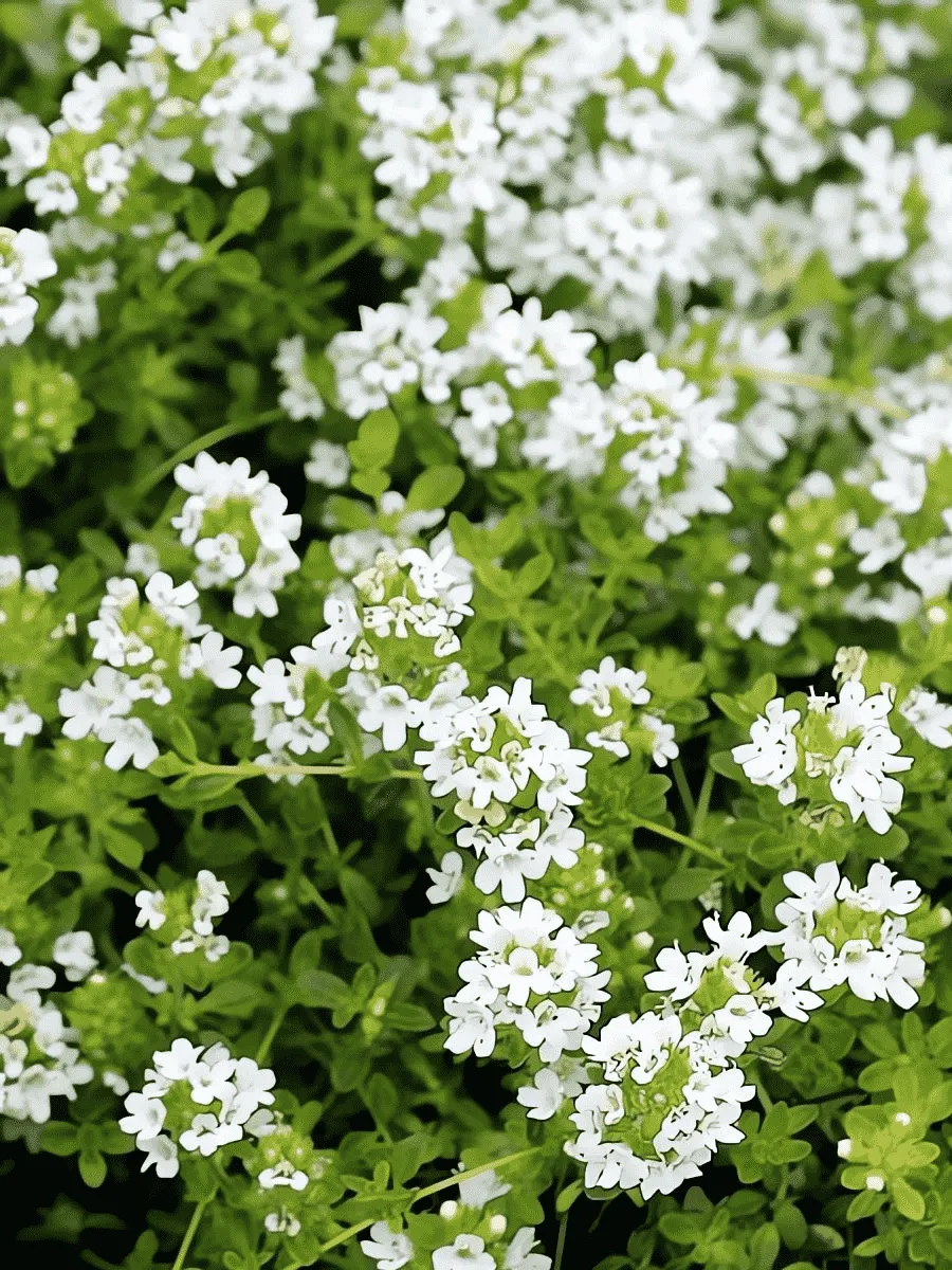 Тимьян белый (Thymus albus) — многолетний полукустарник семейства яснотковых, покоряющий взор своей нежной красотой и тонким ароматом. Стебли тонкие, слегка приподнимающиеся над поверхностью почвы, густо покрыты мелкими овальными листьями изумрудно-зелёного цвета, словно миниатюрные драгоценности, сверкающие на солнце. Листья ароматные, мягкие на ощупь, источают приятный запах, усиливающийся после дождя или лёгкого прикосновения. Цветки мелкие, собраны в рыхлые соцветия, белоснежные лепестки которых напоминают крошечные звёздочки, мерцание которых оживляет степи и луга юга России. Растёт тимьян преимущественно на сухих открытых пространствах, предпочитая солнечные участки с песчаной почвой, где свободно разрастается, покрываясь ковром зелени и создавая живописную картину природы.