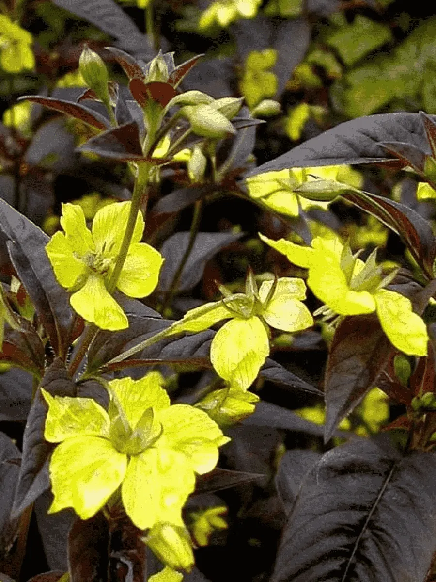 Вербейник пурпурный сорта *Firecracker* пленяет взор роскошной зеленью и яркими соцветиями, словно искры фейерверка, вспыхивающими среди пышной листвы. Это многолетнее травянистое растение достигает высоты до метра, формируя компактную кустистую крону с прямостоячими побегами, покрытыми мелкими овальными листьями насыщенного изумрудного оттенка. Листья гладкие, блестящие, слегка заострённые на концах, создают плотный зелёный фон, подчёркивающий красоту цветков. Цветёт вербейник обильно и продолжительно, начиная с середины лета и вплоть до первых осенних заморозков. Соцветия представляют собой густые кисти мелких трубчатых цветов глубокого винно-красного цвета, источающих тонкий аромат и привлекающих внимание насекомых-опылителей. Растение предпочитает влажные плодородные почвы и солнечные места, легко адаптируется к различным условиям произрастания, быстро разрастаясь и создавая живописные заросли вдоль берегов водоёмов, прудов и ручьёв.