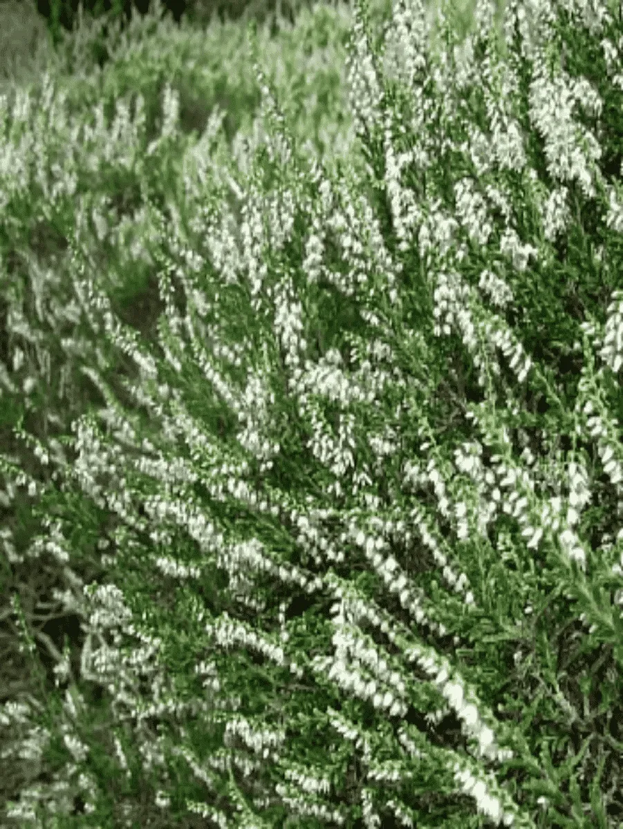 Вереск обыкновенный Alba Praecox — миниатюрная вечнозелёная кустарничковая формация, покорившая сердца садоводов нежностью своего облика и изысканностью цветения. Этот невысокий кустик высотой до полуметра обладает густой кроной, состоящей из тонких веточек, покрытых мелкими узкими листьями тёмно-зелёной окраски, придающей растению особую декоративность даже вне периода цветения. Цветёт вереск обильно и продолжительно, начиная уже ранней весной, покрываясь множеством мелких белоснежных цветков-колокольчиков, собранных в живописные кистевидные соцветия, словно украшая собой садовые композиции воздушным облаком чистоты и свежести. Растение предпочитает солнечные места и лёгкую песчаную почву, распространено преимущественно в умеренных широтах Европы, где образует живописные заросли на сухих открытых пространствах, радуя глаз своей утончённой красотой долгие годы.