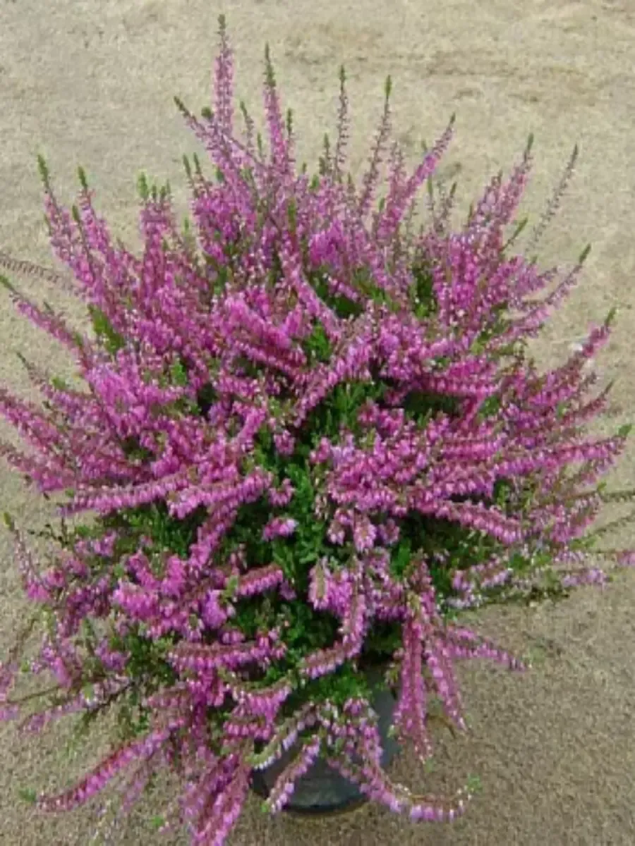 Вереск обыкновенный сорта *Carmen* — очаровательное вечнозелёное растение семейства вересковых, покоряющее сердца садоводов своей утончённой красотой и неприхотливостью. Этот невысокий кустарник достигает высоты всего около полуметра, формируя плотную округлую крону, густо покрытую мелкими тёмно-зелёными листьями игловидной формы, словно миниатюрные изумрудные стрелки, устремлённые вверх. Цветёт обильно и продолжительно, начиная с конца лета до глубокой осени, покрываясь множеством нежных цветков насыщенного пурпурного оттенка, собранных в живописные кистевидные соцветия, придающие растению особую декоративность и очарование. Предпочитает солнечные места и лёгкую песчаную почву, легко адаптируется к суровым климатическим условиям, стойко перенося засуху и морозы. Благодаря своему элегантному облику и способности создавать яркие акценты в саду, вереск *Carmen* становится незаменимым элементом ландшафтного дизайна, украшая собой каменистые сады, альпийские горки и миксбордеры.
