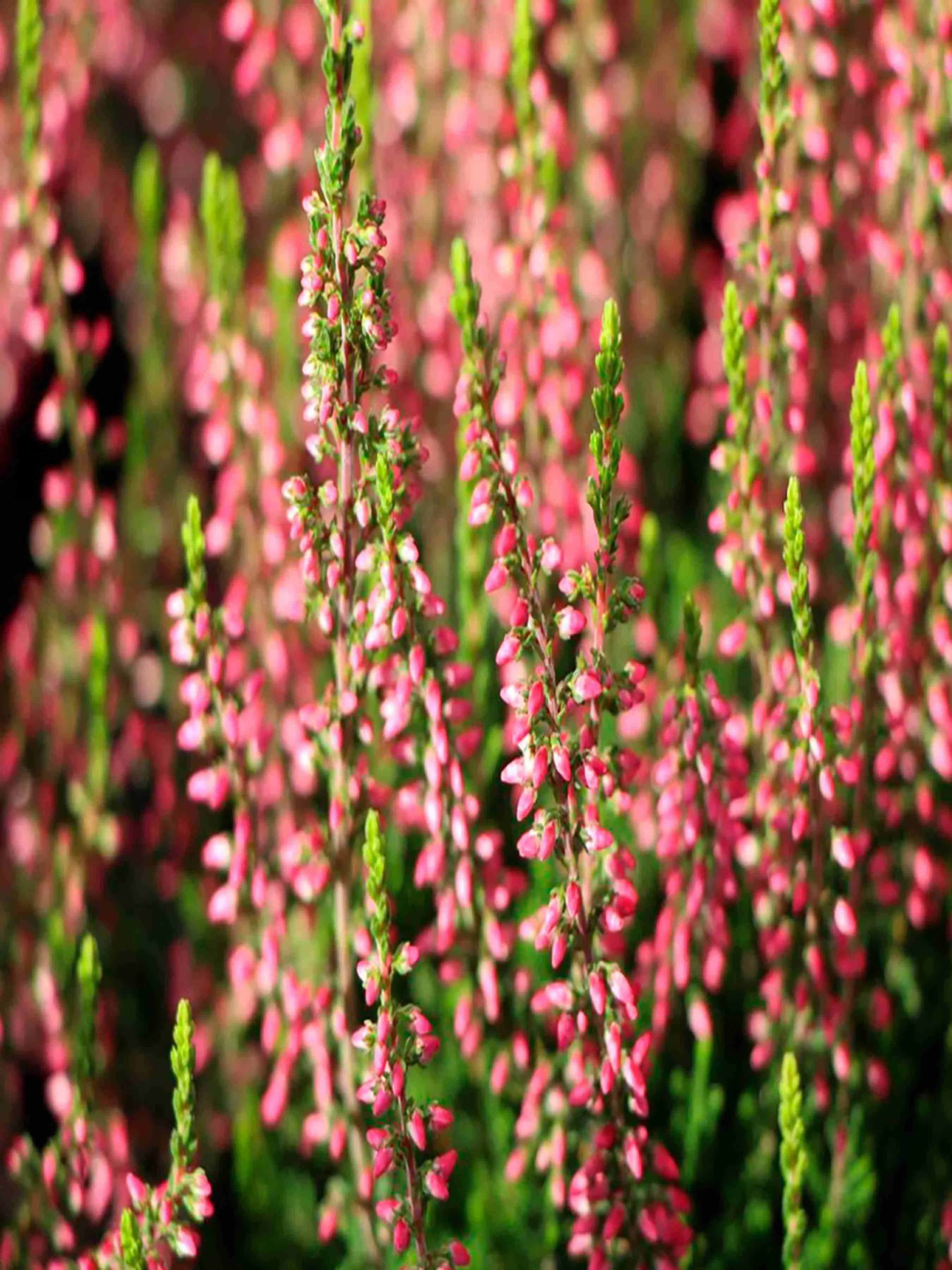 Вереск обыкновенный сорта *Katja* — очаровательное вечнозелёное растение, покоряющее сердца садоводов нежностью своего облика и изысканной простотой форм. Это компактный кустарник высотой до полуметра, обладающий густой кроной, состоящей из тонких веточек, покрытых мелкими тёмно-зелёными листьями игловидной формы, придающими растению особую воздушность и лёгкость. Цветёт вереск обильно и продолжительно, покрываясь множеством мелких цветков нежно-розового оттенка, собранных в живописные кистевидные соцветия, словно миниатюрные свечи, мерцающие среди зелени. Его цветы источают тонкий аромат, привлекающий насекомых-опылителей и наполняющий сад особым очарованием позднего лета и ранней осени. Растение предпочитает солнечные места и хорошо дренированные почвы, легко адаптируется к суровым климатическим условиям, демонстрируя стойкость и выносливость даже в условиях прохладной северной погоды. Благодаря своей декоративности и неприхотливости, вереск Katja широко используется в ландшафтном дизайне, украшая альпийские горки, рокарии и миксбордеры, создавая атмосферу спокойствия и гармонии.