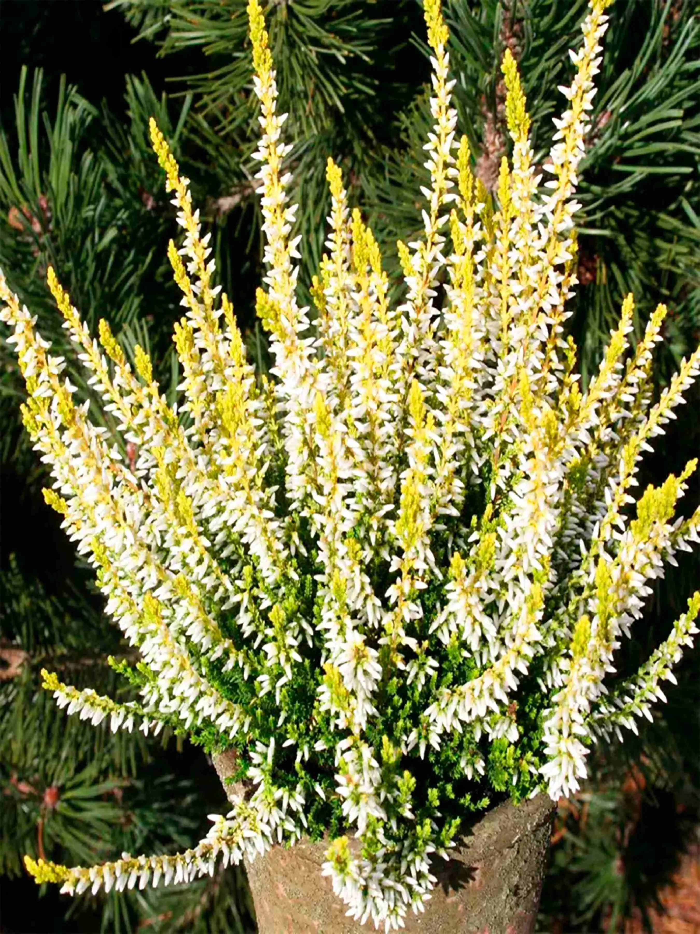 Вереск обыкновенный сорта *Sarah* — очаровательное вечнозелёное растение, покоряющее сердца садоводов своей утончённой красотой и неприхотливостью. Этот невысокий кустарник достигает высоты всего около полуметра, формируя аккуратную округлую крону, словно миниатюрная зелёная шапочка, укрывающая землю мягким ковром. Листья мелкие, игольчатые, густо покрывают ветви, создавая впечатление нежной бархатистости, особенно заметной зимой, когда зелень приобретает лёгкий бронзовый оттенок, добавляя саду изысканности даже в холодное время года. Но истинное великолепие вереска раскрывается летом и осенью, когда куст покрывается множеством мелких цветков насыщенного розово-пурпурного цвета, собранных в живописные кистевидные соцветия, будто маленькие свечи, мерцающие среди зелени. Цветение длится долго, радуя глаз яркими красками до самой поздней осени, превращая сад в волшебное место, полное очарования природы. Растёт медленно, предпочитая солнечные места и хорошо дренированные почвы, легко адаптируясь к суровым условиям климата, становясь украшением каменистых садов, альпийских горок и рокариев.