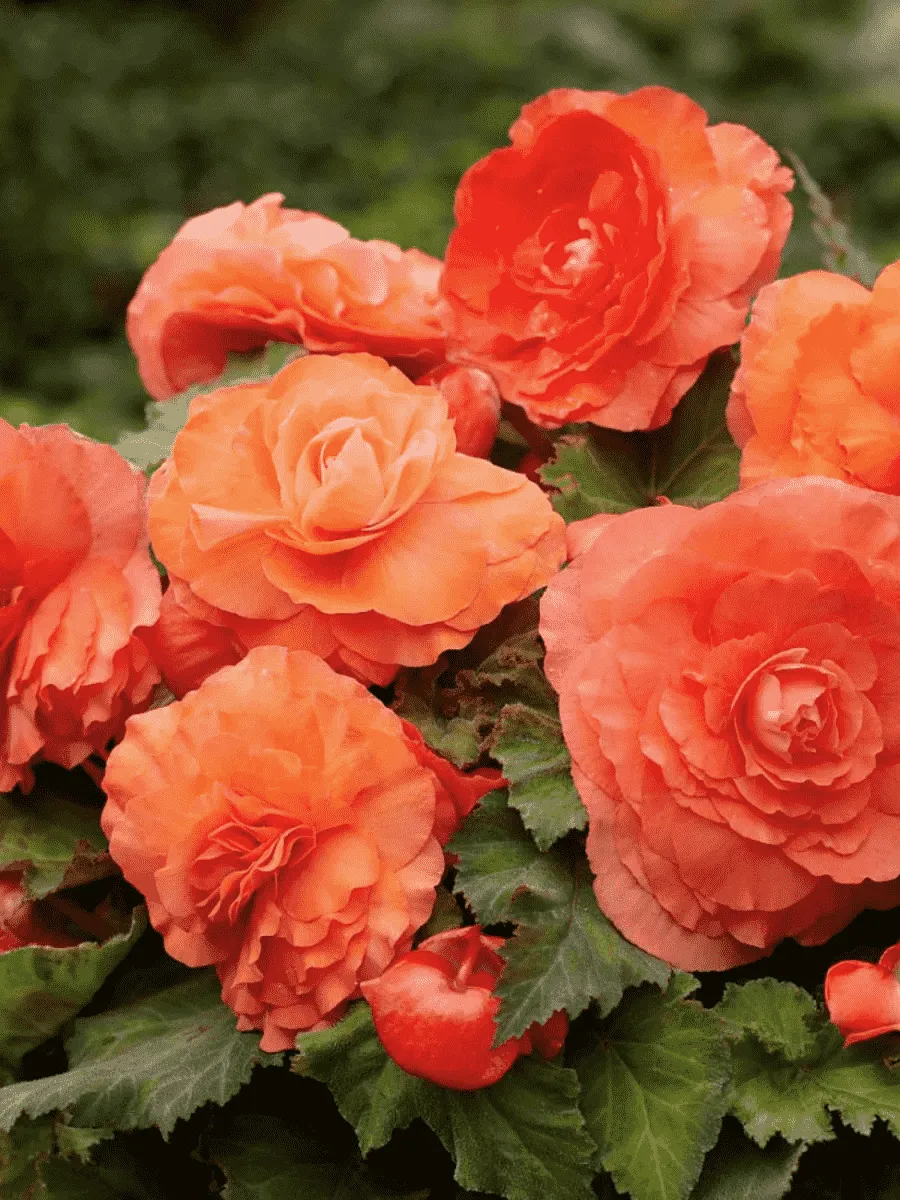Бегония Double Salmon пленяет взор нежностью розово-оранжевых лепестков, собранных в пышные махровые соцветия, словно миниатюрные букеты, украшающие растение всё лето до поздней осени. Листья крупные, сердцевидные, бархатистые, тёмно-зелёные с серебристым отливом и причудливым узором прожилок, придающим особую декоративность каждому листочку. Стебли крепкие, прямостоячие, формируют компактную кустистую крону высотой около полуметра. Растёт бегония быстро, легко размножается черенкованием и семенами, предпочитая полутень и влажную плодородную почву. Этот экзотический гость тропиков прекрасно адаптируется к домашним условиям, радуя глаз изысканным сочетанием ярких цветов и элегантной зелени.