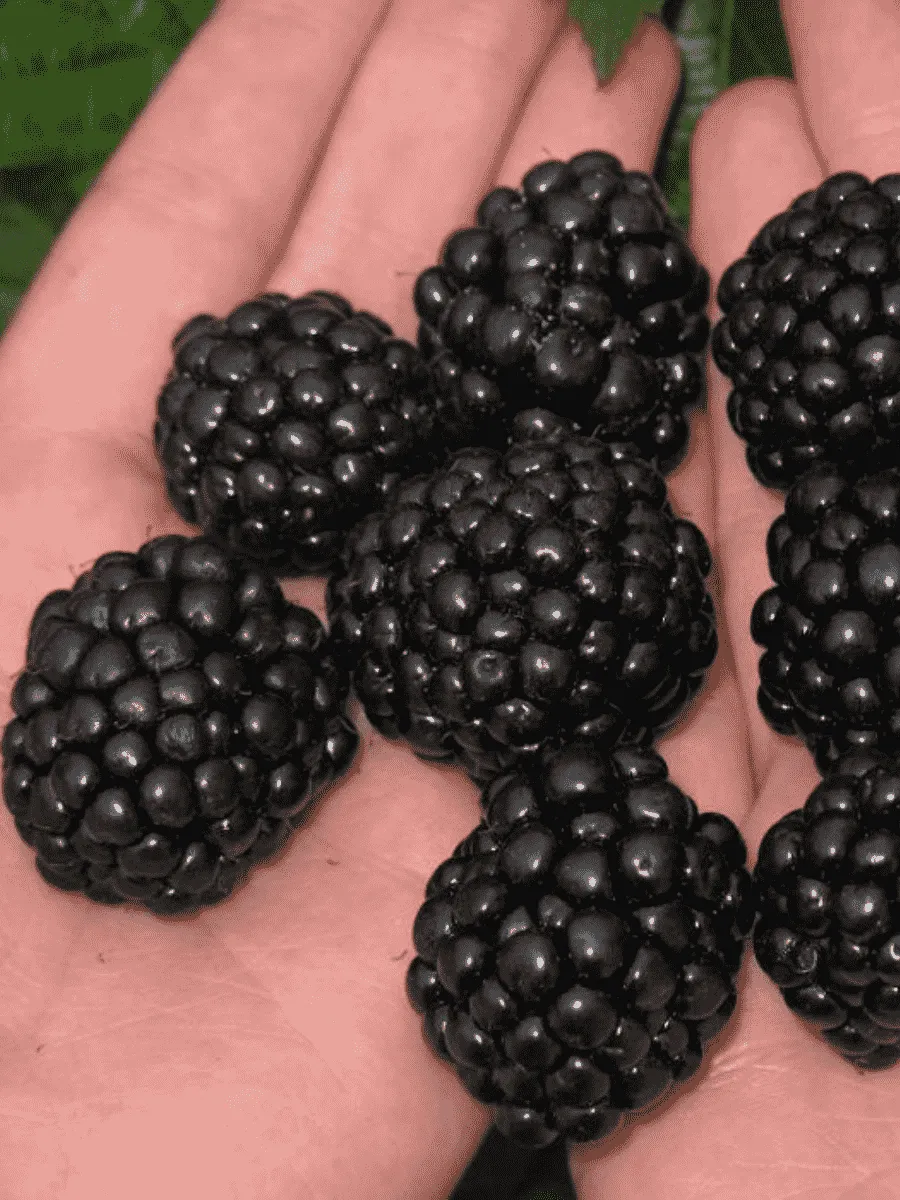 Ежевика садовая сорта *Jumbo* представляет собой мощную полувьющуюся кустарниковую лиану с гибкими побегами длиной до трёх метров, покрытыми мелкими шипиками и густым восковым налётом, придающим стеблям благородный сизый оттенок. Листья крупные, тёмно-зелёные, пятилопастные, слегка морщинистые, с чётко выраженными жилками и зубчатым краем, создают плотную ажурную крону, привлекающую внимание своей декоративностью даже вне периода цветения. Цветки белые, диаметром около двух сантиметров, собраны в небольшие кисти, распускаются обильно и продолжительно, наполняя воздух тонким ароматом, способствующим привлечению насекомых-опылителей. Растёт быстро, легко укореняется отводками и черенками, отличается высокой зимостойкостью и устойчивостью к болезням, прекрасно адаптируется к различным типам почв и условиям освещённости, предпочитая солнечные места с плодородной почвой и умеренным поливом.