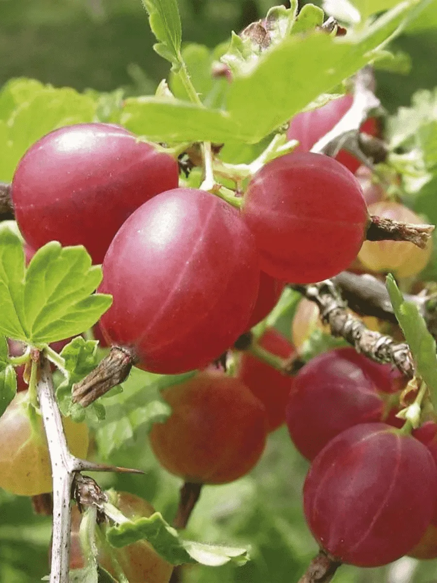 Крыжовник обыкновенный сорта *Hinnonmaki Rod* представляет собой компактный кустарник высотой до полутора метров с густой кроной, состоящей из множества тонких прямостоячих ветвей, покрытых мелкими шипиками. Листья округло-яйцевидные, слегка морщинистые, тёмно-зелёной окраски сверху и серовато-сизые снизу, придают растению благородную строгость облика. Цветки мелкие, одиночные или парные, бело-розовые, появляются ранней весной одновременно с распусканием первых листочков, создавая нежный ароматный ореол вокруг куста. Растёт быстро, предпочитает солнечные места и плодородные почвы, устойчив к засухе и морозу, широко распространён в садах средней полосы России благодаря своей неприхотливости и декоративности.