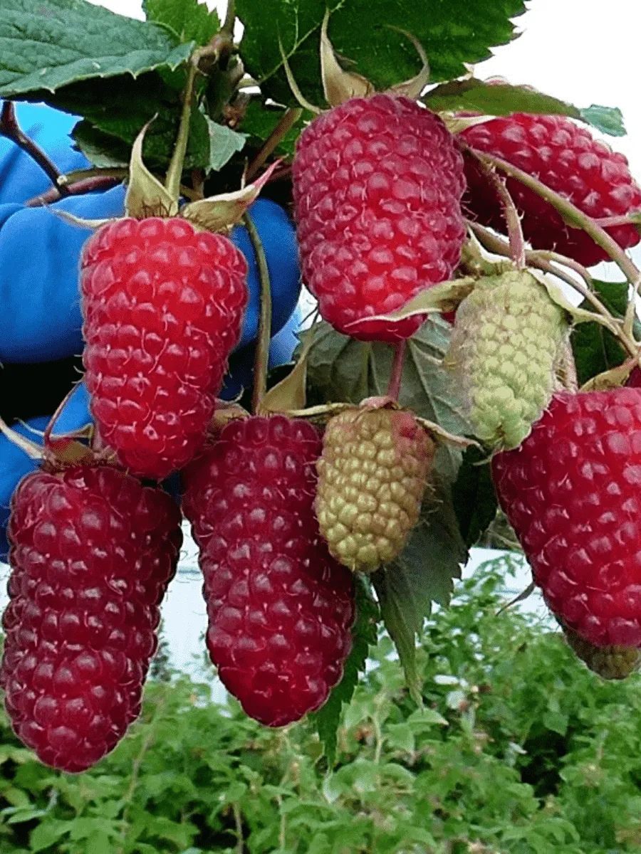 Малина ремонтантная Похвала — элегантное растение с грациозной формой куста, достигающего полутора метров высоты, украшенное крупными тройчатыми листьями насыщенного зелёного цвета, слегка гофрированными по краям и покрытыми нежным пушком снизу. Цветёт обильно и продолжительно, начиная с середины лета до поздней осени, раскрывая многочисленные мелкие цветки белого оттенка, собранные в рыхлые кисти, источающие тонкий аромат, привлекающий насекомых-опылителей. Стебли тонкие, гибкие, покрыты мелкими шипиками, придающими растению особую декоративность даже после окончания цветения. Корневая система мощная, разветвлённая, способствующая быстрому укоренению и распространению малинника, формирующему живописную живую изгородь или эффектный акцент сада.