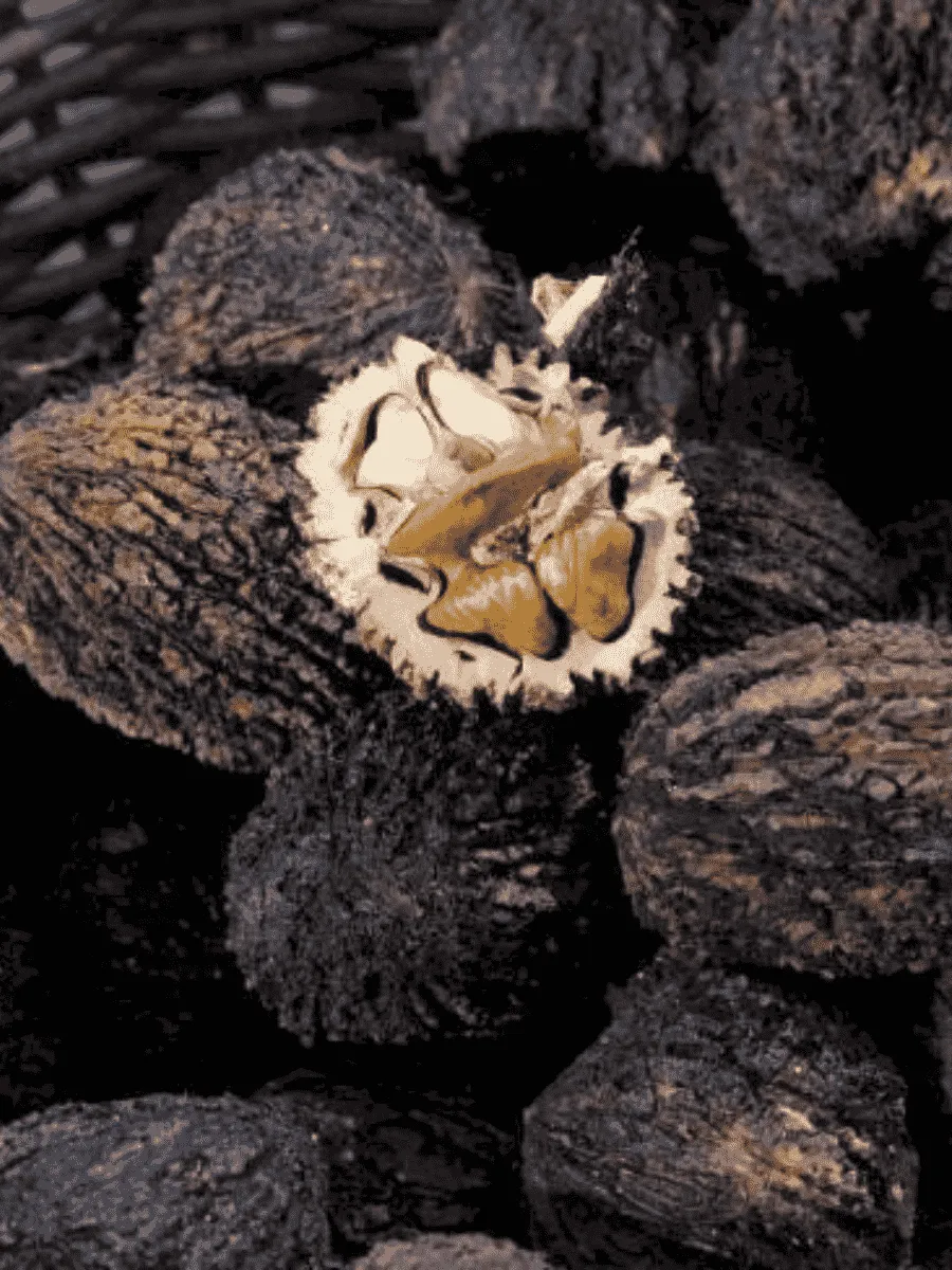 Круглый, яйцевидной или обратнояйцевидной формы с заостренным верхом. Диаметр орешка – 3-5 см.