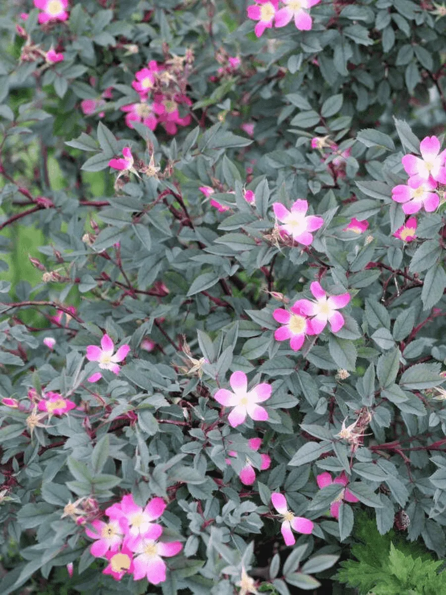 Шиповник сизый — кустарник благородной красоты, достигающий высоты до двух метров, украшенный густым переплетением тонких колючих ветвей серовато-зелёного оттенка, покрытых нежным восковым налетом, придающим растению особый серебристо-сизый блеск. Листья перистые, состоят из пяти—семи яйцевидных листочков с мелкозубчатым краем, сверху тёмно-зелёные, снизу покрыты мягким пушком, отчего приобретают приятный матовый оттенок. Цветки одиночные либо собраны в небольшие соцветия, крупные, диаметром около четырёх сантиметров, чашелистики узколанцетные, лепестки нежно-розовые, переходящие в белые тона ближе к центру цветка, источают тонкий аромат, привлекающий насекомых-опылителей. Растёт преимущественно на сухих склонах, лесных полянах и опушках, предпочитая солнечные места и плодородную почву, распространён в европейской части России, Украине и Беларуси, радуя глаз своей утончённой красотой и создавая живописные уголки природы.