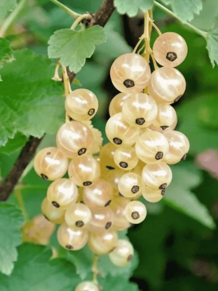 Смородина голландская белая — элегантная садовая культура, привлекающая внимание изысканным обликом и нежной красотой цветения. Это невысокий кустарник с раскидистыми ветвями, достигающий высоты до полутора метров, покрытый крупными листьями насыщенно-зелёного цвета, слегка морщинистыми и блестящими, словно отполированными природой. Листья имеют характерную трёхлопастную форму, края зубчатые, придающие растению особую декоративность даже вне периода цветения. Цветёт смородина обильно, мелкими белыми цветами, собранными в живописные кисти, источающие тонкий аромат, который наполняет воздух свежестью весеннего сада. Растение предпочитает плодородные почвы и умеренный климат, широко распространено в частных садах Европы благодаря своей неприхотливости и способности украшать пространство своим утончённым видом.