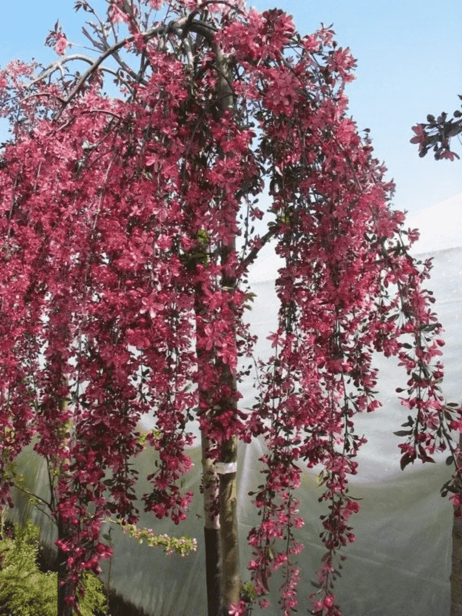 Яблоня декоративная Royal Beauty пленяет взор своей утончённой красотой и благородством форм. Это компактное дерево высотой до трёх метров обладает густой округлой кроной, состоящей из мелких тёмно-зелёных глянцевых листочков с лёгким бронзовым отливом весной и насыщенно-красной осенней окраской. Цветёт растение роскошно крупными махровыми цветами нежно-розового оттенка, собранными в пышные соцветия, придающие дереву праздничный облик. Бутоны раскрываются постепенно, создавая эффект длительного цветения, которое продолжается около двух недель. Растение отличается устойчивостью к неблагоприятным условиям среды, хорошо переносит городские условия и легко адаптируется к различным типам почв. Благодаря своим декоративным качествам яблоня Royal Beauty широко используется в ландшафтном дизайне парков, садов и частных участков, украшая пространство изысканной элегантностью и нежностью весеннего цветения.