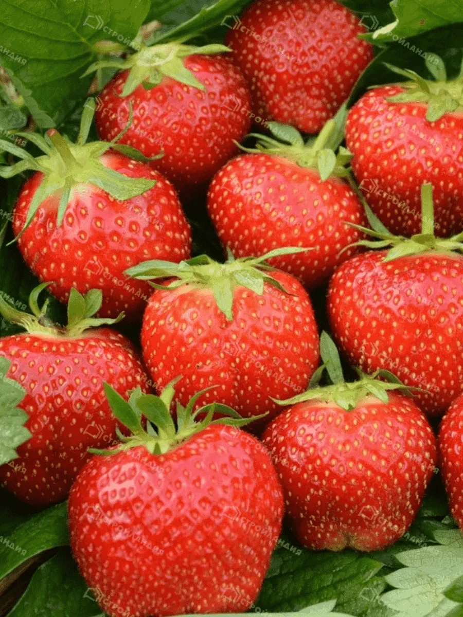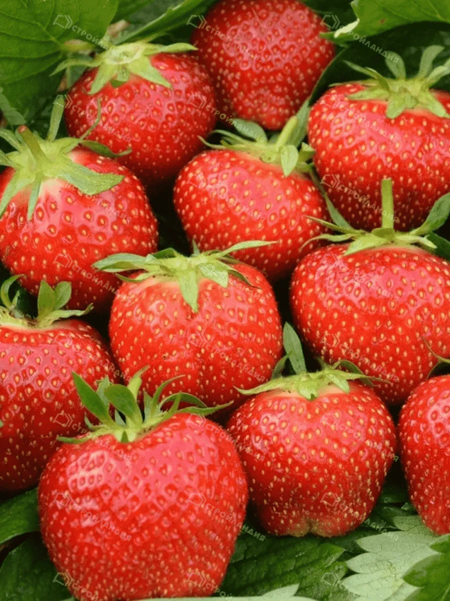 Земляника садовая сорта 'Эльсанта' представляет собой многолетнее травянистое растение с компактной розеткой крупных зелёных листьев, имеющих характерную слегка морщинистую поверхность и зубчатые края, придающие растению особую декоративность. Листья расположены на длинных черешках, создавая пышный кустик, который радует глаз своей свежестью и сочностью даже вне периода цветения. Цветоносы возвышаются над листвой, увенчанные крупными белыми цветами с ярко-жёлтыми тычинками, собранными в рыхлые соцветия-зонтики. Период цветения продолжительный, начинается рано весной и продолжается до поздней осени, обеспечивая непрерывное украшение сада нежными ароматными бутонами. Растение отличается высокой устойчивостью к неблагоприятным условиям среды, легко адаптируется к различным типам почв и климатическим зонам, быстро разрастается благодаря образованию многочисленных дочерних растений-усов, формирующих плотные заросли, способные стать украшением любого участка.