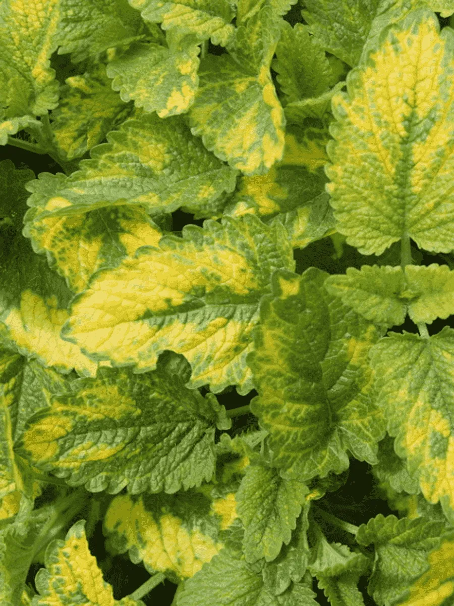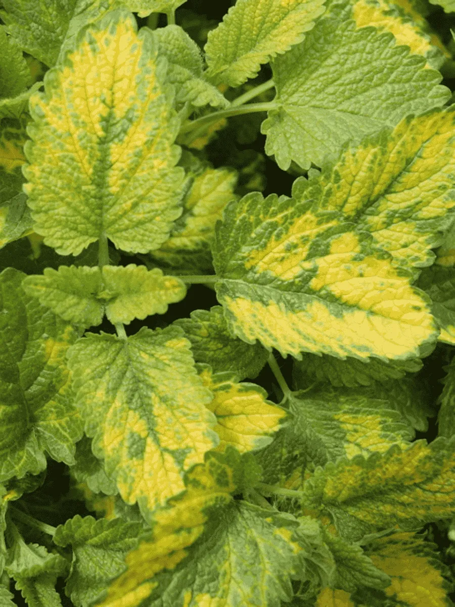 Мелисса лекарственная сорта *Aureovariegata* пленяет взор нежной зеленью листвы, украшенной золотистыми штрихами и пятнами, словно солнечный свет оставил на листьях свои следы. Листья сердцевидные, слегка морщинистые, покрыты мягким пушком, источают тонкий аромат лимона, который усиливается от прикосновения. Стебли тонкие, ветвистые, поднимаются вверх стройными рядами, достигая высоты до полуметра. Цветки мелкие, нежно-лиловые, собраны в рыхлые колосовидные соцветия, распускаются постепенно, начиная снизу, создавая впечатление непрерывности цветения всё лето. Растёт мелисса легко, предпочитая солнечные места и плодородную почву, распространяя вокруг себя атмосферу спокойствия и гармонии.