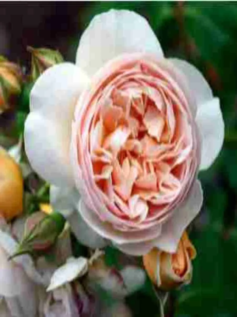 Роза Английская кустовая *Juliet* пленяет взор изысканным очарованием старинной английской розы, обладая одновременно элегантностью и утончённостью форм. Куст средней высоты, компактный и пышный, достигает около метра в высоту и ширину, украшая пространство густым зелёным покровом нежных светло-зелёных листочков, слегка волнистых по краям, словно бархатная ткань, трепещущая от лёгкого ветерка. Цветки крупные, диаметром до десяти сантиметров, собраны в небольшие соцветия, раскрываются постепенно, демонстрируя совершенство формы и грациозность лепестков, переливающихся оттенками кремово-розового цвета, переходящего в золотисто-абрикосовый оттенок. Аромат цветков тонкий, сладкий, напоминает аромат старых английских сортов роз, вызывая ассоциации с уютом и спокойствием сада викторианской эпохи. Период цветения продолжительный, начинается в июне и продолжается до поздней осени, радуя глаз непрерывным каскадом цветов. Растёт быстро, легко адаптируется к различным условиям выращивания, предпочитая солнечные места и плодородную почву, устойчива к болезням и неблагоприятным погодным условиям, становясь украшением любого сада своей благородной красотой и аристократической простотой.