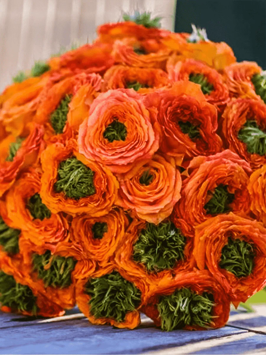 оранжево-персиковый с зелёной серединкой