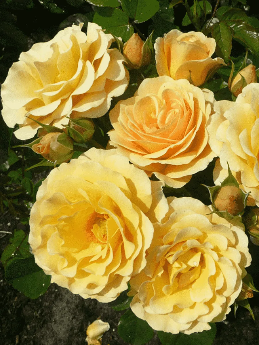 Роза флорибунда *Rebecca Mary* пленяет взор роскошной кроной густых зелёных листьев насыщенного оттенка, слегка блестящих от природы и придающих растению благородную свежесть. Листья имеют классическую овально-заострённую форму с мелкими зубчиками по краям, создавая гармоничный фон для пышного цветения. Цветки этой розы поражают своей нежностью и утончённостью: крупные бутоны раскрываются в полумахровые цветы диаметром около восьми сантиметров, демонстрируя изысканный оттенок лососево-розового цвета с едва уловимым золотистым отблеском. Лепестки словно сотканы из шёлка, плавно переходящего от светлого тона у основания до чуть более глубокого оттенка на кончиках. Аромат цветков тонкий, лёгкий, деликатно дополняющий красоту цветка. Куст компактный, хорошо разветвлённый, достигает высоты одного метра, украшая собой сады и парки своим продолжительным цветением с июня до поздней осени. Растёт быстро, легко адаптируется к различным условиям выращивания, радуя садоводов устойчивостью к болезням и неприхотливостью в уходе.