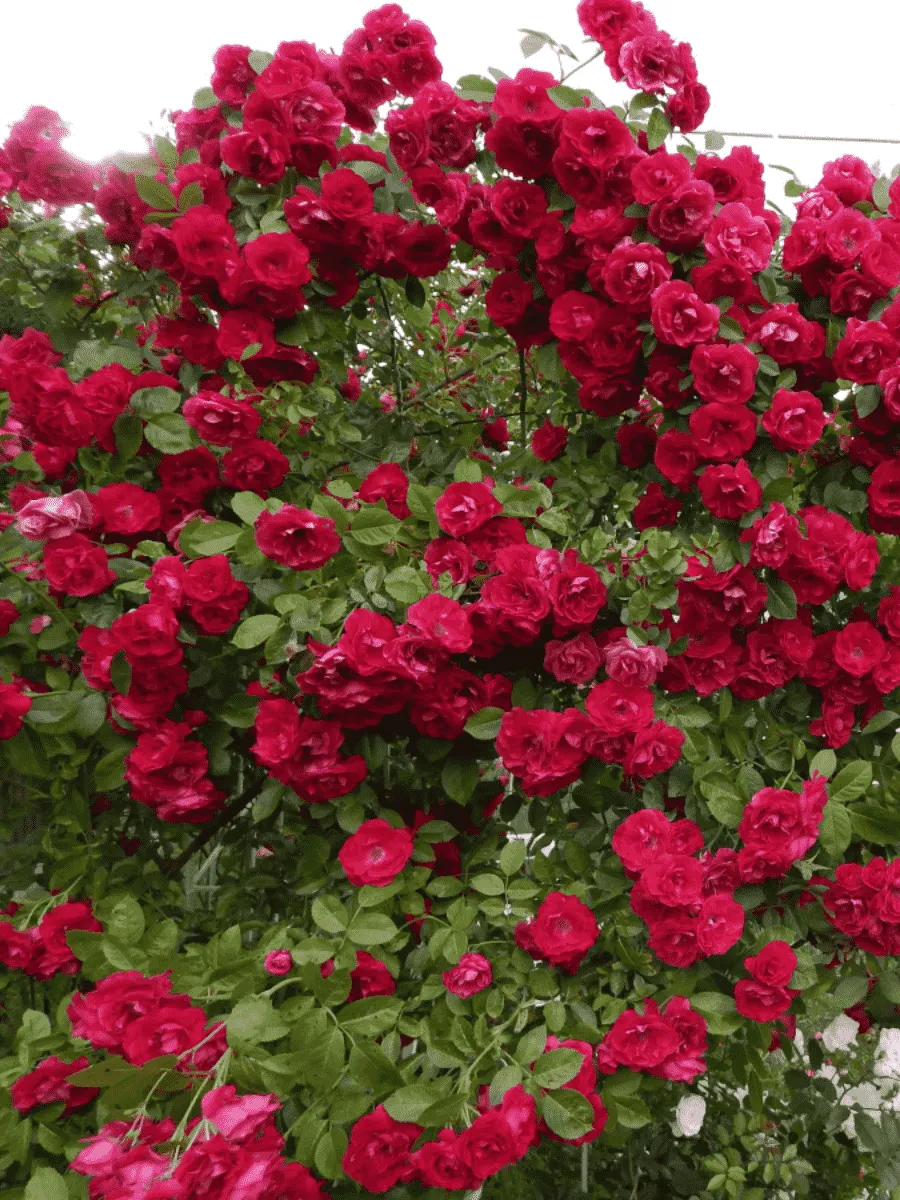 Роза плетистая *Ffammentanz* пленяет взор роскошной зеленью густых перистых листьев насыщенного изумрудного оттенка, слегка волнистых по краям и покрытых нежным восковым блеском. Её гибкие побеги, достигающие трёх метров длины, украшены крупными махровыми цветами глубокого винно-красного цвета, источающими тонкий аромат, который особенно ощутим ранним утром и вечером. Бутоны раскрываются постепенно, демонстрируя многослойную структуру лепестков, плавно переходящих от тёмно-бордового центра к пурпурному краю. Цветение начинается в конце июня и продолжается до первых заморозков, превращая растение в живописный каскад ярких красок, идеально подходящий для вертикального озеленения беседок, арок и стен зданий.