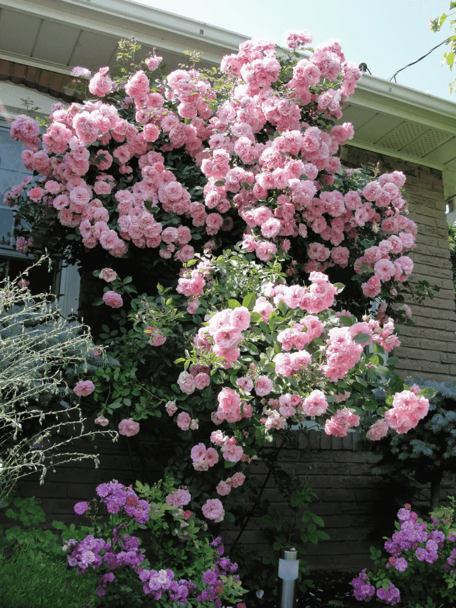 Роза плетистая *John Davis* пленяет взор роскошной зеленью густых перистых листьев насыщенного тёмно-зелёного оттенка, слегка блестящих и покрытых нежным восковым налетом, придающим растению изысканный благородный шарм. Цветки крупные, полумахровые, нежно-розового цвета с лёгким кремово-белым оттенком в центре лепестков, источают тонкий аромат, наполняющий воздух сладостью летних дней. Бутоны раскрываются постепенно, демонстрируя грациозную смену оттенков от бледно-абрикосовых до пастельно-кремовых, создавая впечатление мягкого живописного полотна. Куст сильнорослый, раскидистый, достигает высоты около трёх метров, легко покрывается густой массой цветов, превращаясь в пышный каскад благоухающих розовых волн. Растёт быстро, хорошо ветвится, образует длинные гибкие побеги, идеально подходящие для украшения арок, беседок и стен зданий, придавая саду атмосферу романтической элегантности и утончённой красоты.